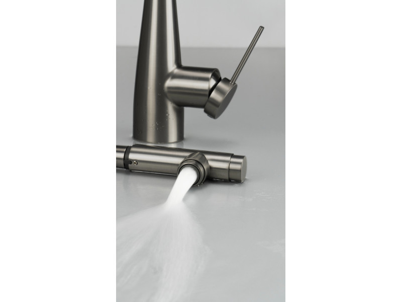 Eridan titanium mosogató csaptelep_vízszűrő csatlakozóval_kihúzható kifolyóval